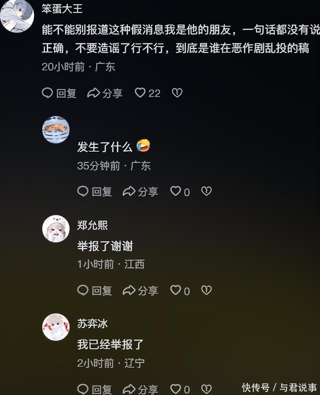 一开始他的好友们沉浸在悲伤中,一直没有回应这些说法,然而在评论发酵之后,他的好友忍无可忍开始辟谣了,在评论区喊话,希望网友们不要再传播谣言,称这些谣言都像是“恶作剧”一样。